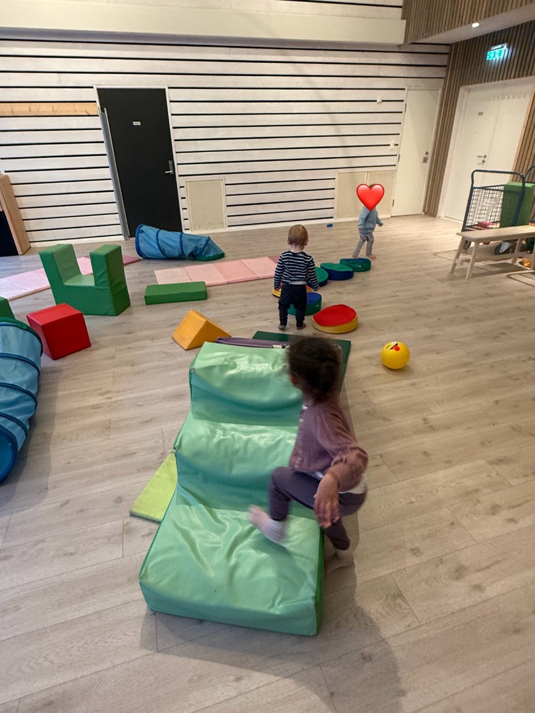 I gymsalen lager vi hinderløype, turner, spiller ballspill og utforsker ulike måter å bruke kroppen på. Barna får utfordre motorikk, balanse og koordinasjon i trygge rammer, og aktivivitetene tilpasses alder og forutsettning.